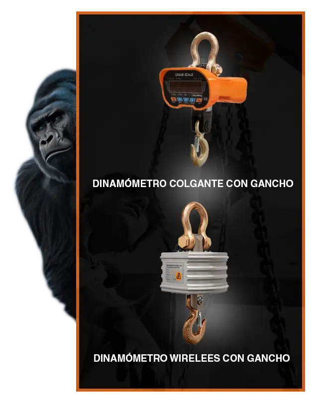 – Dinamómetro Wireless con gancho: Si te encuentras realizando una maniobra a mucha distancia y necesitas un lector al alcance de tu mano, te recomendamos este producto, el cual incluye un panel con control portátil para ver los datos.