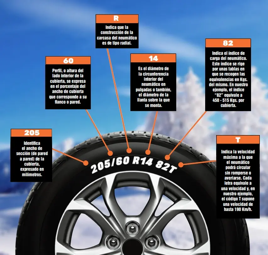 Todos los neumáticos tienen indicada las medidas en su hombro o lado.