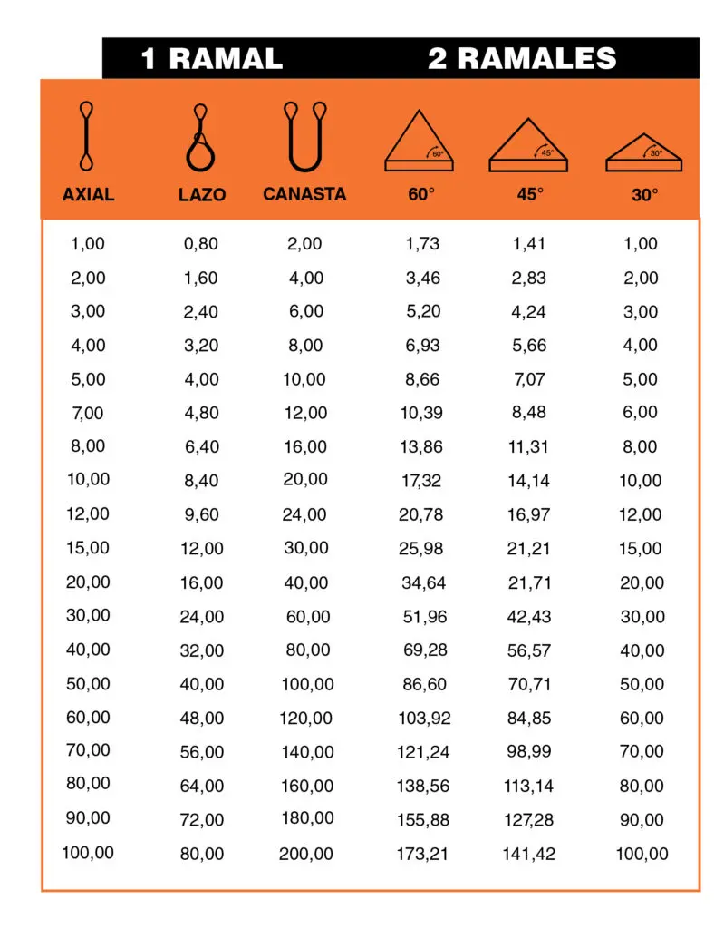 TABLA DE CARGA PARA ESLINGAS TUBULARES