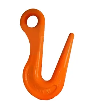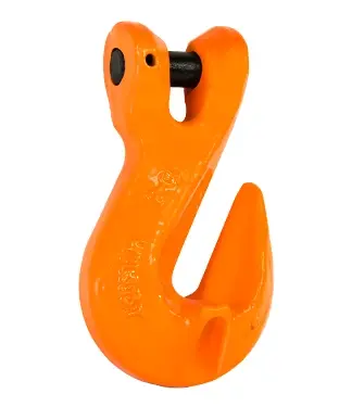 Posiblemente uno de los ganchos más vistos en la industria. Este tipo de gancho siempre es visto en eslingas de cadena. Gancho que posee además un seguro en acero forjado, logrando tener un seguro de mayor resistencia al de acero cincado.