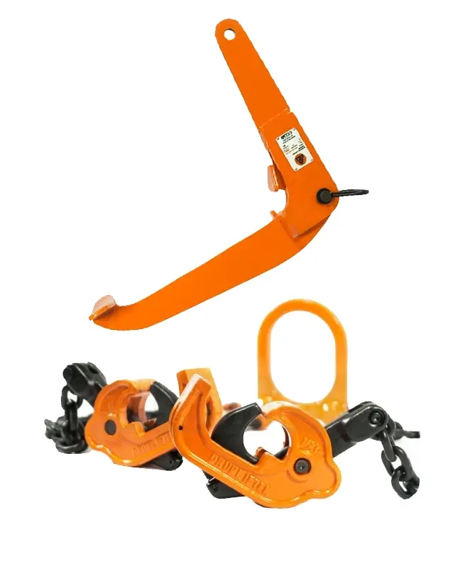 Mordaza tambor lateral: Adecuado para el levante y traslado de tambores de acero que no superen los 1.000kg. Fabricado en acero aleado de alta calidad, con muelas mecanizadas en acero de aleación, templadas y normalizadas. Incorpora un mecanismo de apriete por resorte que asegura un fuerza positiva de agarre inicial.
