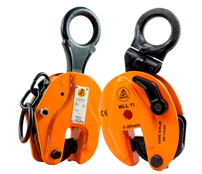 Una mordaza vertical es un dispositivo de sujeción utilizado en operaciones de izaje para transportar de manera vertical planchas y estructuras de acero de forma segura y eficiente.