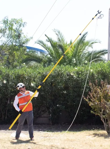 La pértiga telescópica en fibra de vidrio es una herramienta extensible que permite al usuario alcanzar áreas lejanas o peligrosas sin entrar en contacto directo con ellas. Es especialmente útil en trabajos eléctricos debido a las propiedades dieléctricas de la fibra de vidrio, que proporcionan aislamiento contra descargas eléctricas. Estas pértigas son
