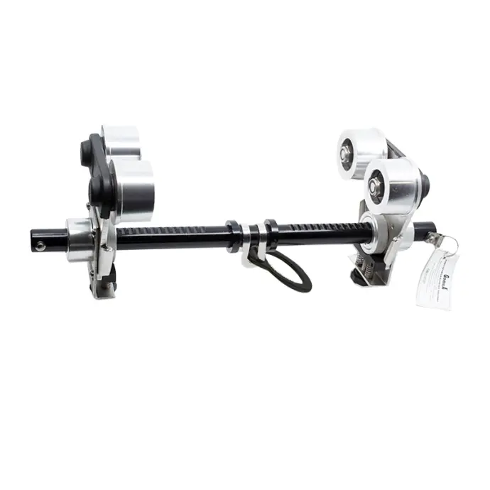 Una característica clave es su sistema de rodillos o ruedas, que permite que el punto de anclaje se mueva a lo largo de la viga.