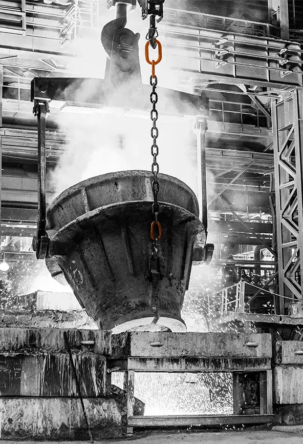 Forjada en caliente en acero aleado y soldada por electrofusión. Calibradas, tratadas térmicamente, normalizadas y testeadas eslabón a eslabón.