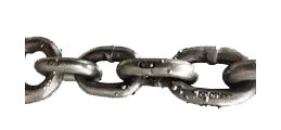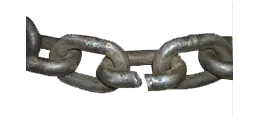 Eslabón de cadena doblado, torcido y deformado.