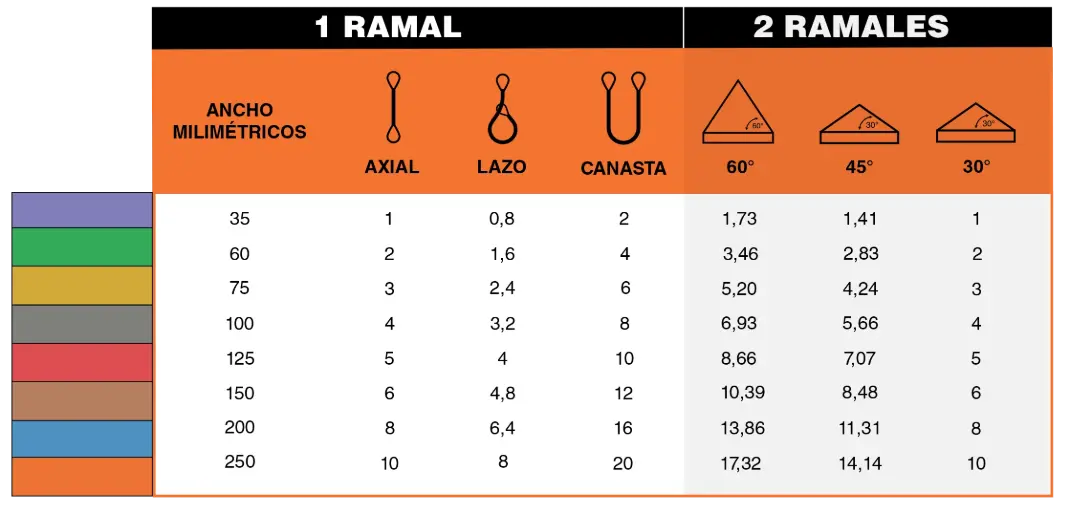 TABLA DE CARGA PARA ESLINGAS PLANAS NORMA EN 1492-1