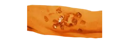 Decoloración y/o zonas frágiles o rígidas en cualquier parte de la eslinga, que puede indicar daño químinico o ultravioleta / luz solar.
