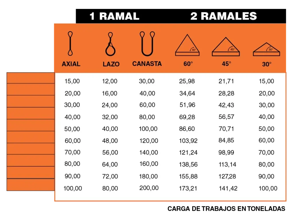 TABLA DE CARGA PARA ESLINGAS TUBULARES