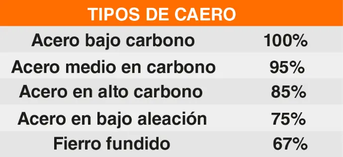 Dependiendo del tipo de acero, se genera una perdida en la capacidad de carga: