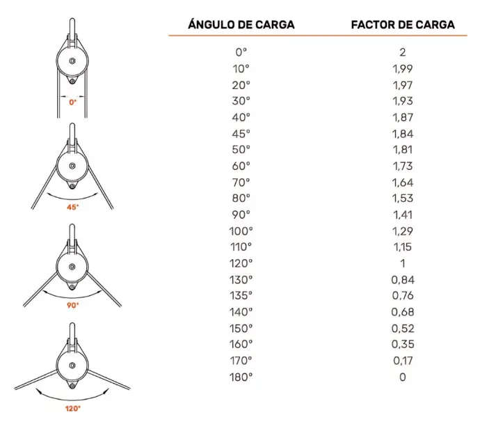 - En la pasteca la carga varía dependiendo del ángulo entre los cables o cabos.