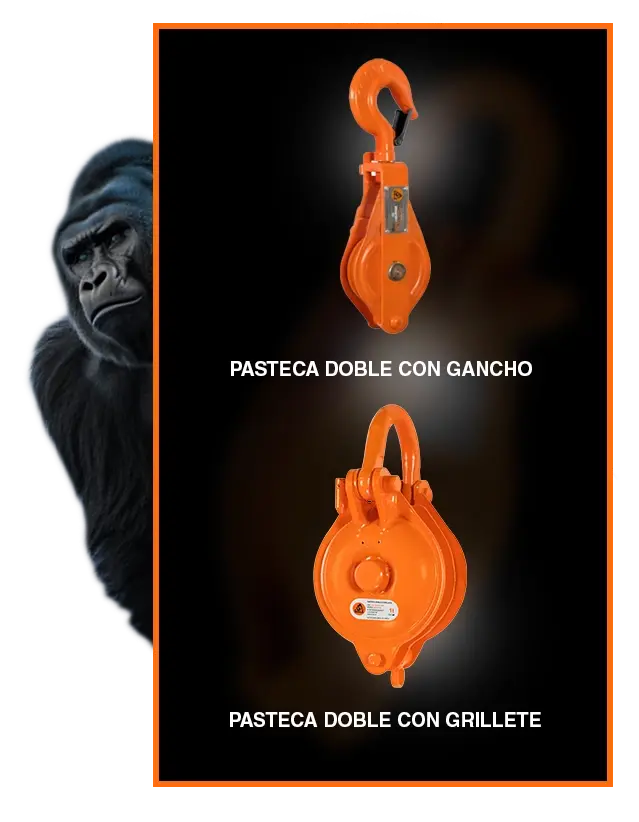 Las pastecas GORILA son manufacturadas con materiales de alta resistencia a la corrosión y golpes, con el objetivo de prolongar su vida útil.