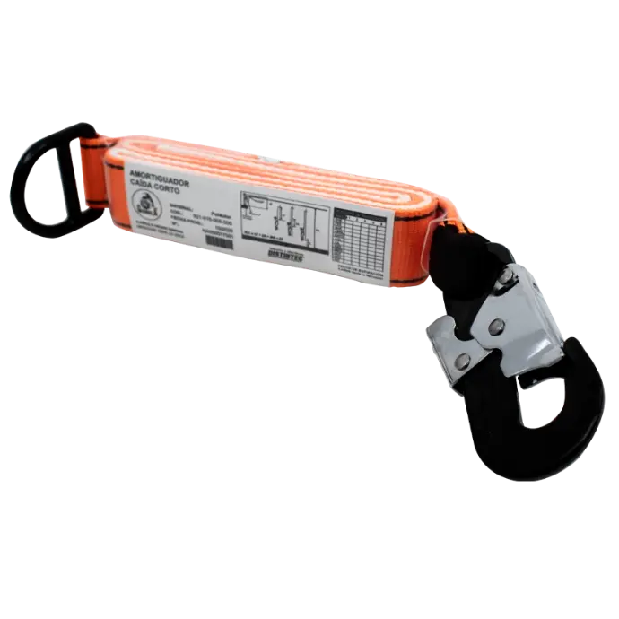 Los amortiguadores caída corto GORILA son fabricados con 1 mosquetón estándar de doble seguro y 1 argolla en D. Y este se encuentra encapsulado en termo contraíble transparente para su protección.