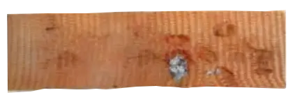 Decoloración y/o zonas frágiles o rígidas en cualquier parte del cabo, que pueda