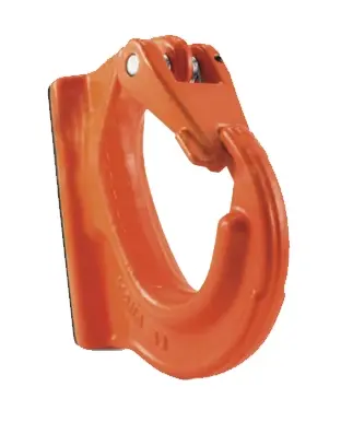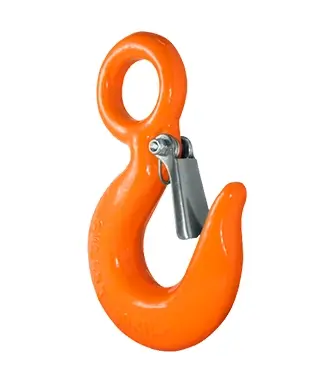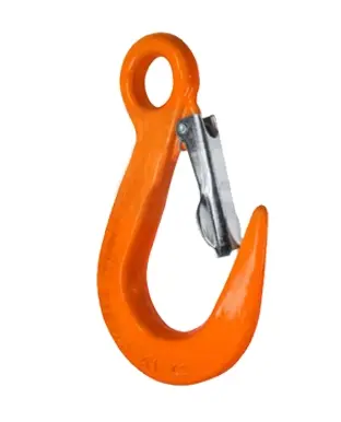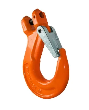 Este tipo de gancho es bien similar al gancho deeslinga conector, pero es más robusto y resistente, debido a que el seguro de este gancho es de acero fundido. También es común ver este tipo de gancho en eslingas de cadena.