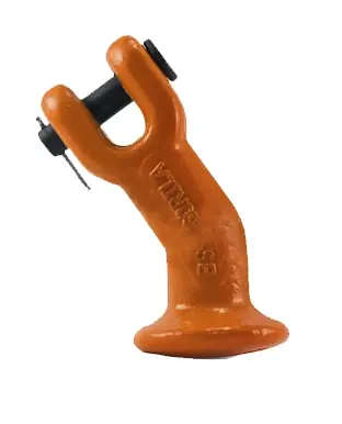 Gancho que también posee un seguro fundido, pero en este caso se requiere adicionar un conector articulado para unirlo a una eslinga de cadena.