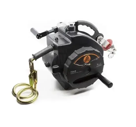 Este equipo es un sistema de línea de vida horizontal portátil que se retrae en una carcasa para un fácil almacenamiento y portabilidad.