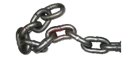 Eslabón de cadena doblado, torcido y deformado.