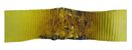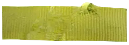 Decoloración y/o zonas frágiles o rígidas en cualquier parte de la eslinga, que puede indicar daño químinico o ultravioleta / luz solar.