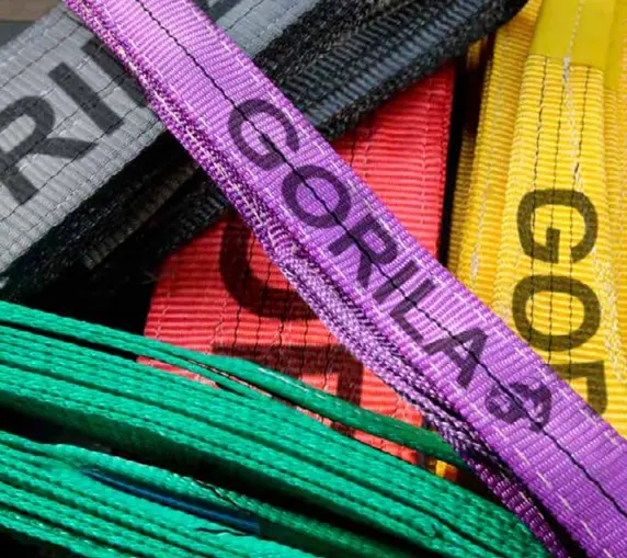 Todas las eslingas GORILA® reciben un tratamiento especial contra la abrasión. Elasticidad: La capacidad de elongación de una eslinga depende del tipo de tejido y del acabado de la eslinga.