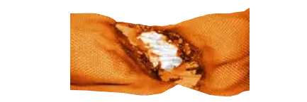 Decoloración y/o zonas frágiles o rígidas en cualquier parte de la eslinga, que puede indicar daño químinico o ultravioleta / luz solar.
